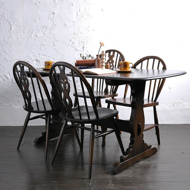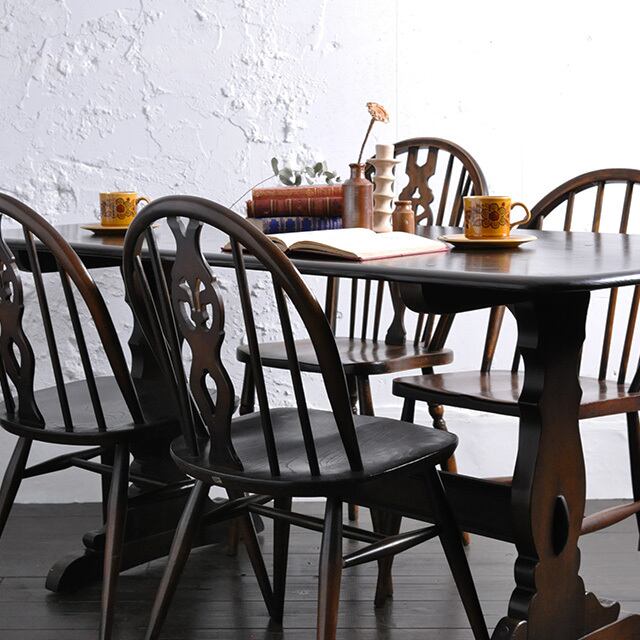 アーコールのチェアに限らず、英国製のクラシックなデザインのキッチンチェアや、ベントウッドチェア、チャーチチェアなど、どのようなチェアをセットしても素敵に収まります。