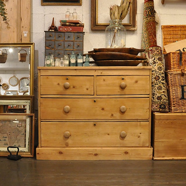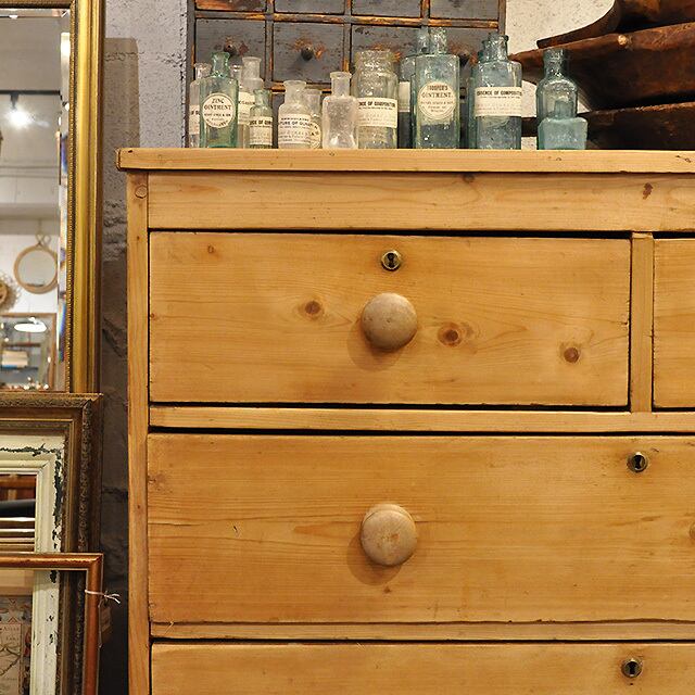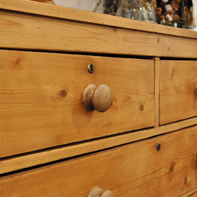 経年変化によって生まれるシャビーシックな風合いが魅力のパイン材のチェストです。