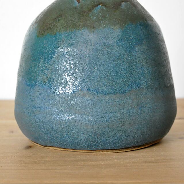 どっしりとした安定感のあるフォルムとターコイズブルーのような味わいのあるブルーが特徴のフラワーベースです。