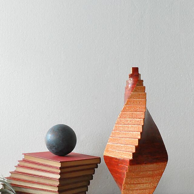 オブジェの向きや光の当たり具合で生まれる陰影や、立てたり寝かせたり、ディスプレイの仕方でも表情が変わる、生き物のようなアートオブジェです。