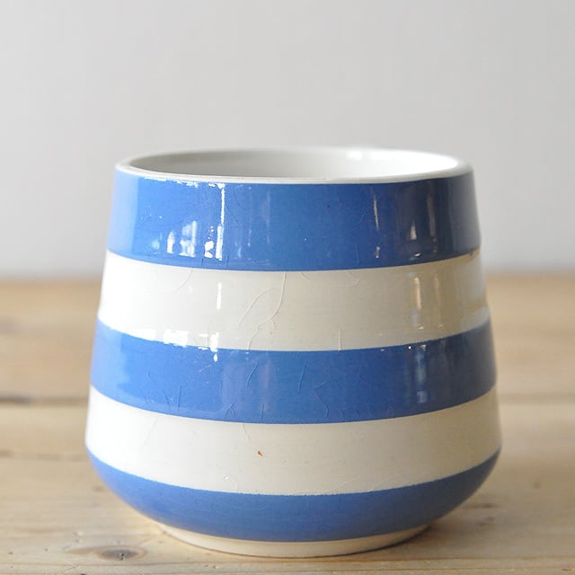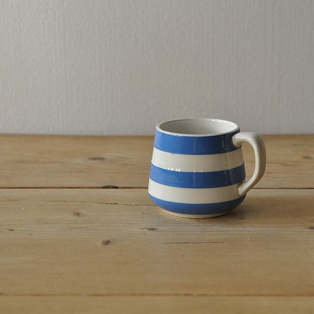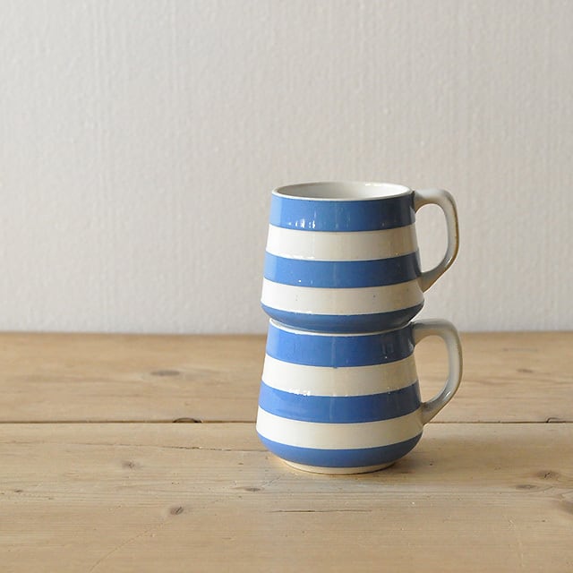 ブルーとアイボリーのボーダー柄が特徴的な、T.G GREEN社のアイコン的シリーズ "コーニッシュウェア"のかわいいマグカップです。
