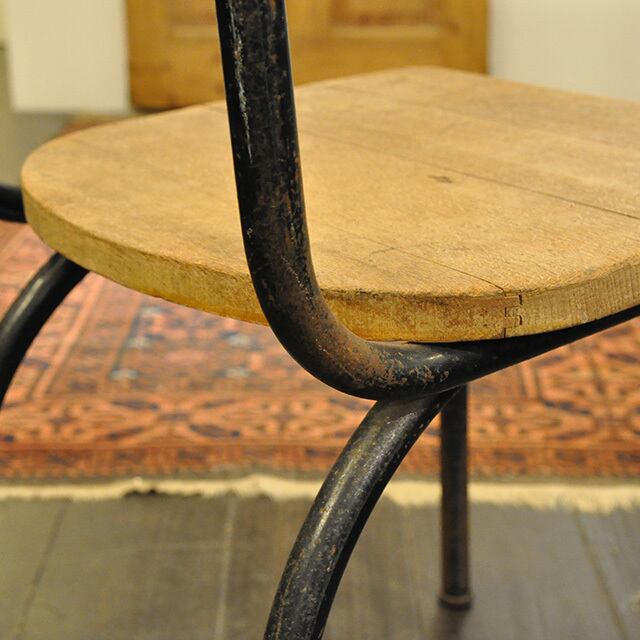木と鉄が醸し出す素材のコントラストが魅力のヴィンテージスクールチェアです。