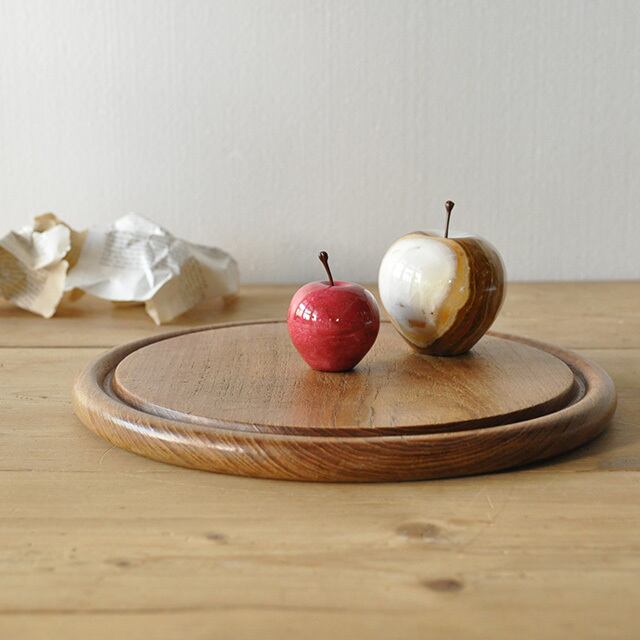 チーク無垢材を削り出してつくられたラウンド型のカッティングボードです。
