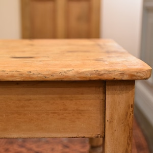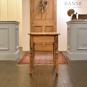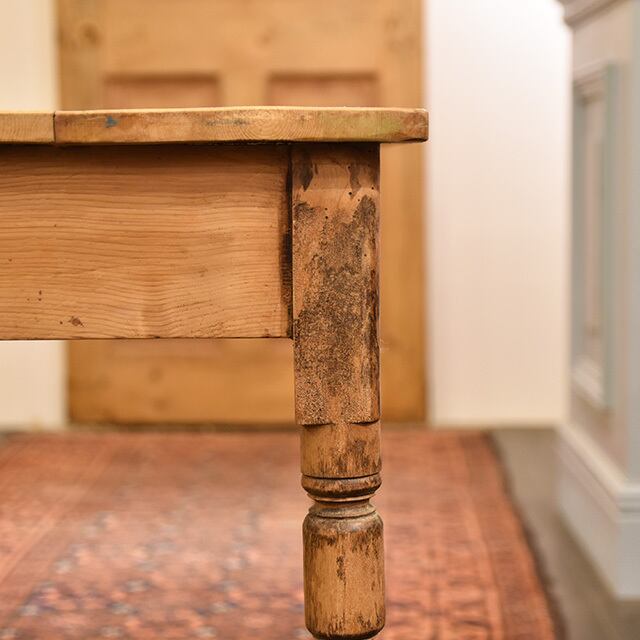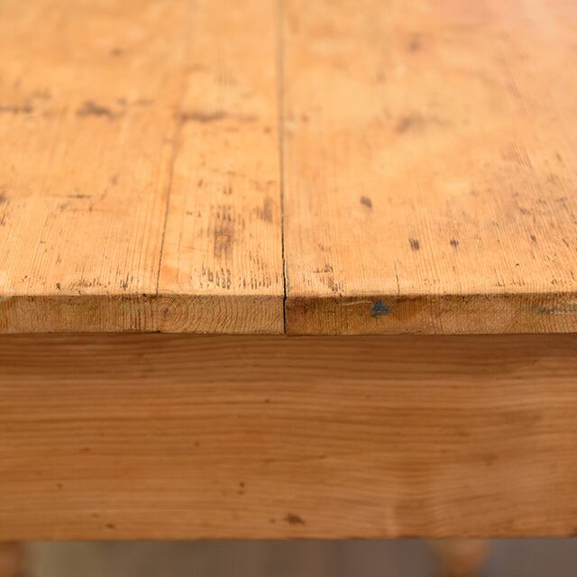 パイン無垢材の天板には、経年変化の反りなどが見られますが、それもまたアンティークならではの味わいです。