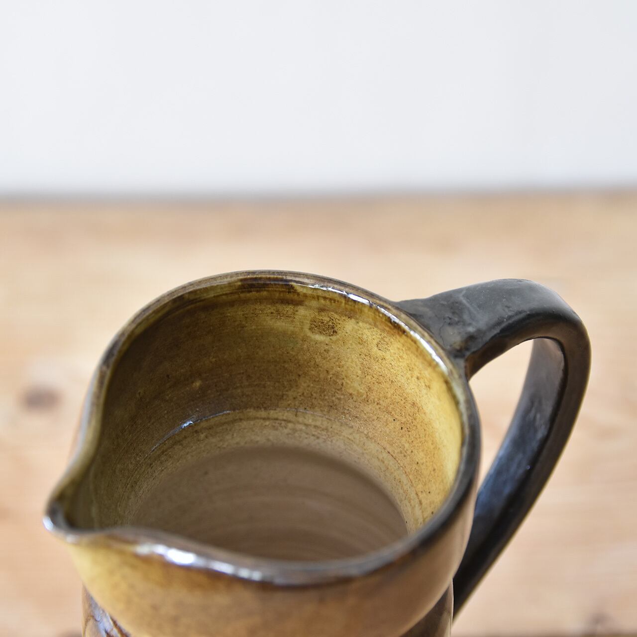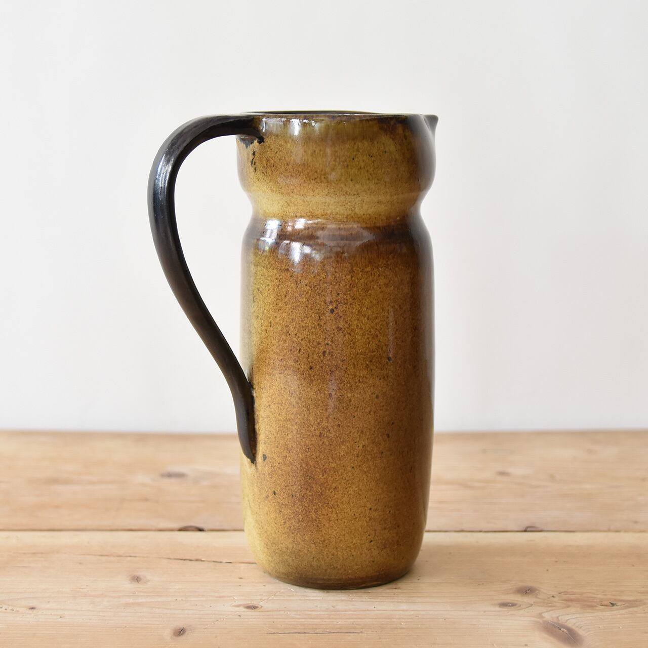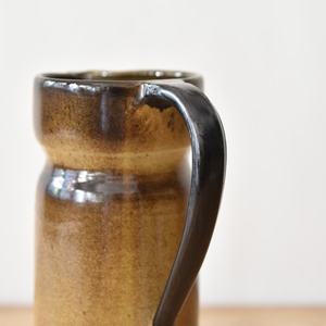 素朴な色合いの茶色とベージュのグラデーションが綺麗な、取っ手が付いたフランス製の陶器のピッチャー(水差し)です。