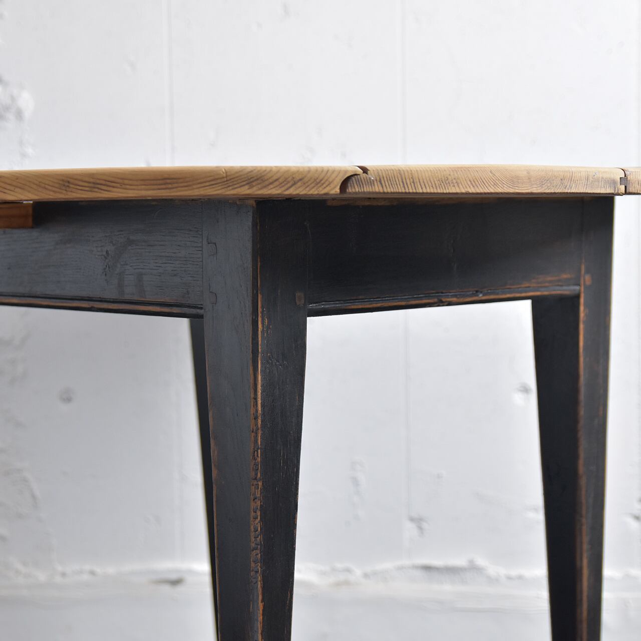 ナチュラルなパイン材の天板に黒くペイントされた脚。