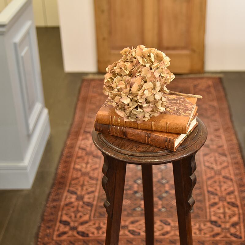天板下に施された木彫の装飾がさりげなくエレガントなハイタイプのプランツスタンドです。