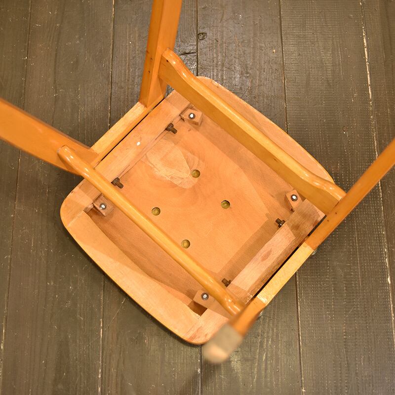 ナチュラルな色合いのビーチ材のフレームとアイボリーのビニールレザーの座面。