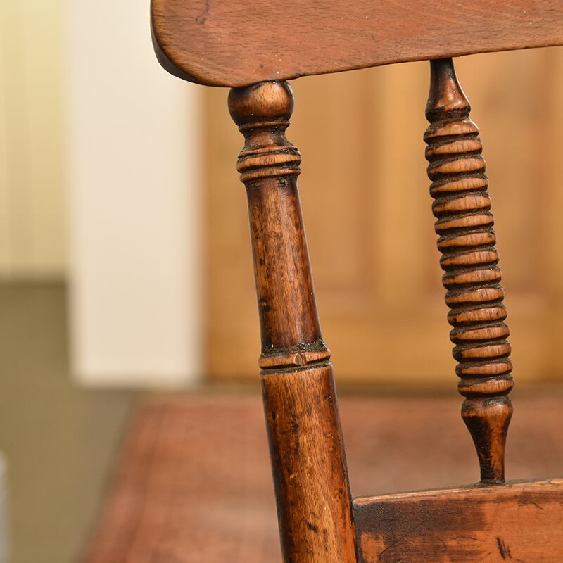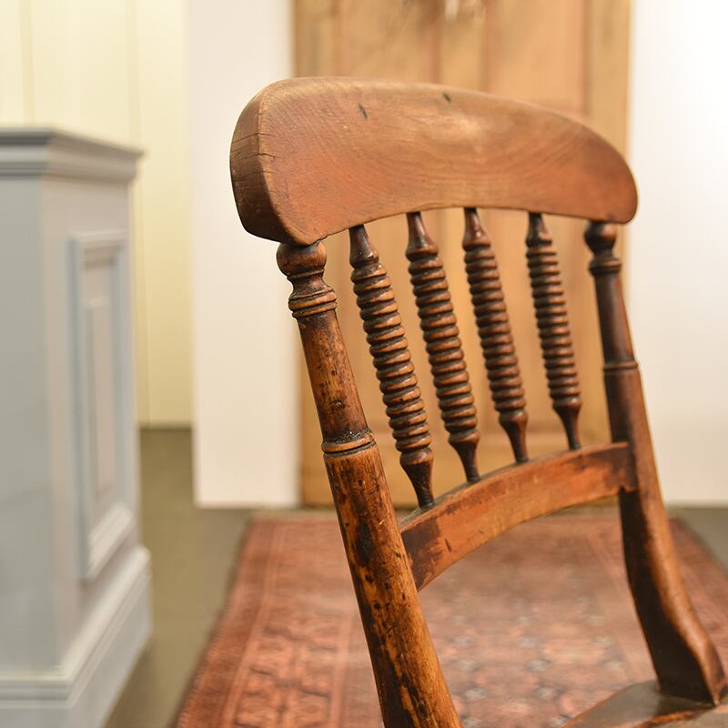 アンティークの風合いを存分に纏った、少し座面高の低いキッチンチェアです。