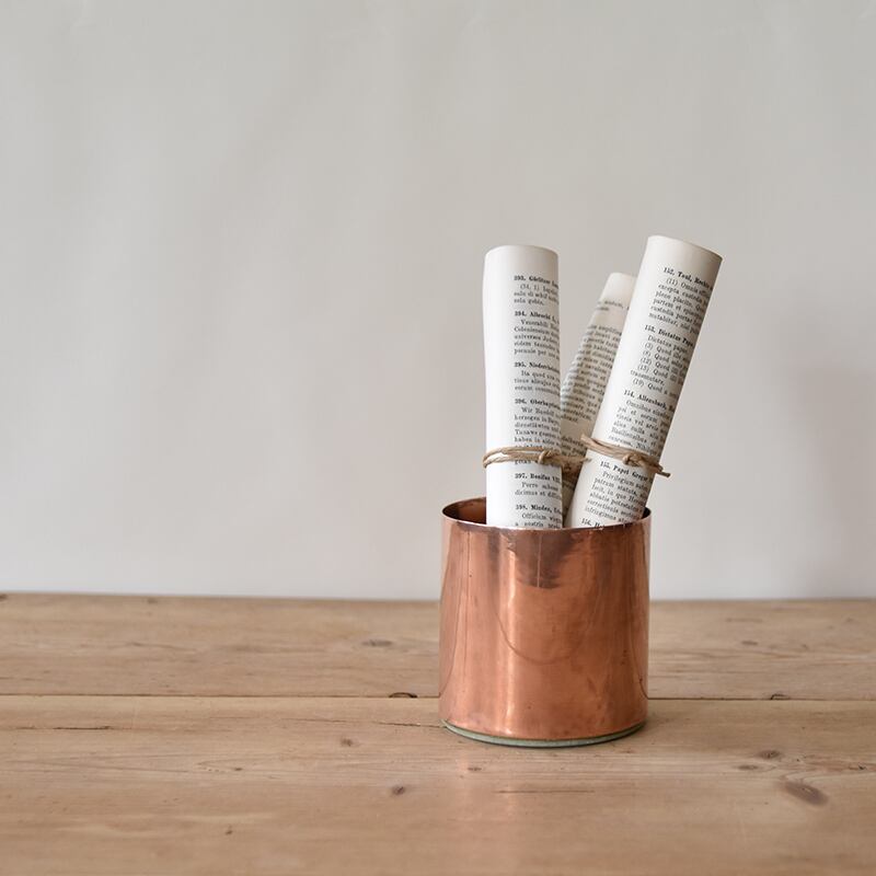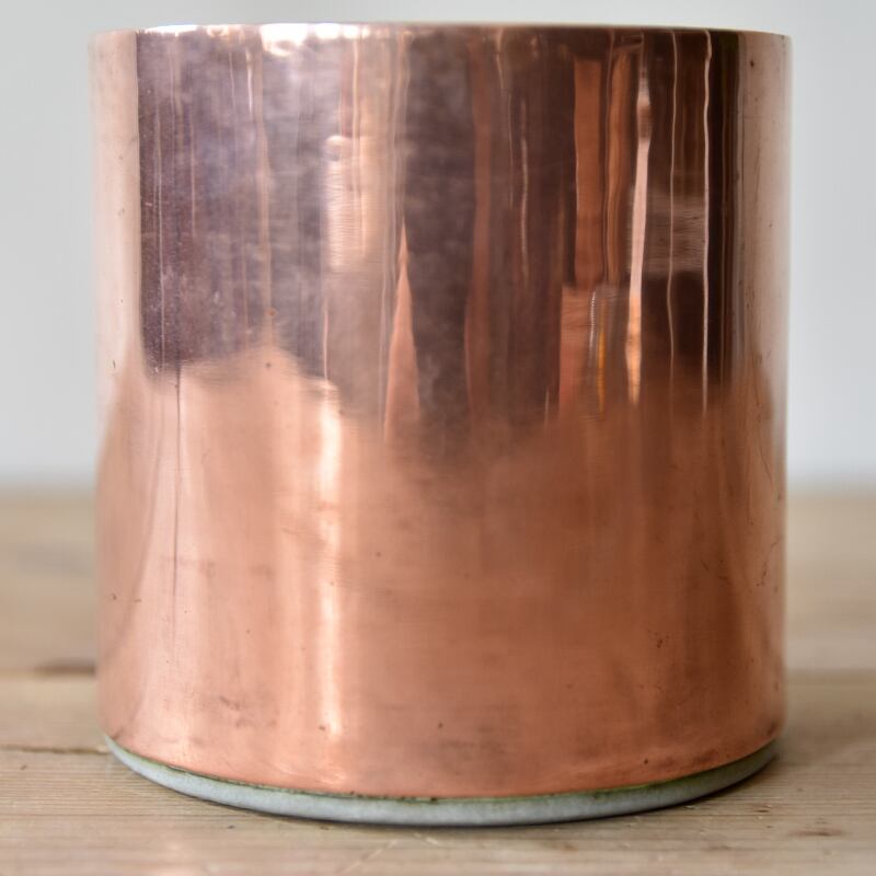 薄い銅板で形成されたシンプルなフォルムのコンテナです。