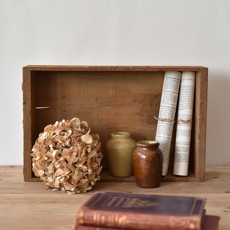 イギリスのフリーマーケットで見つけた小ぶりの木箱です。
