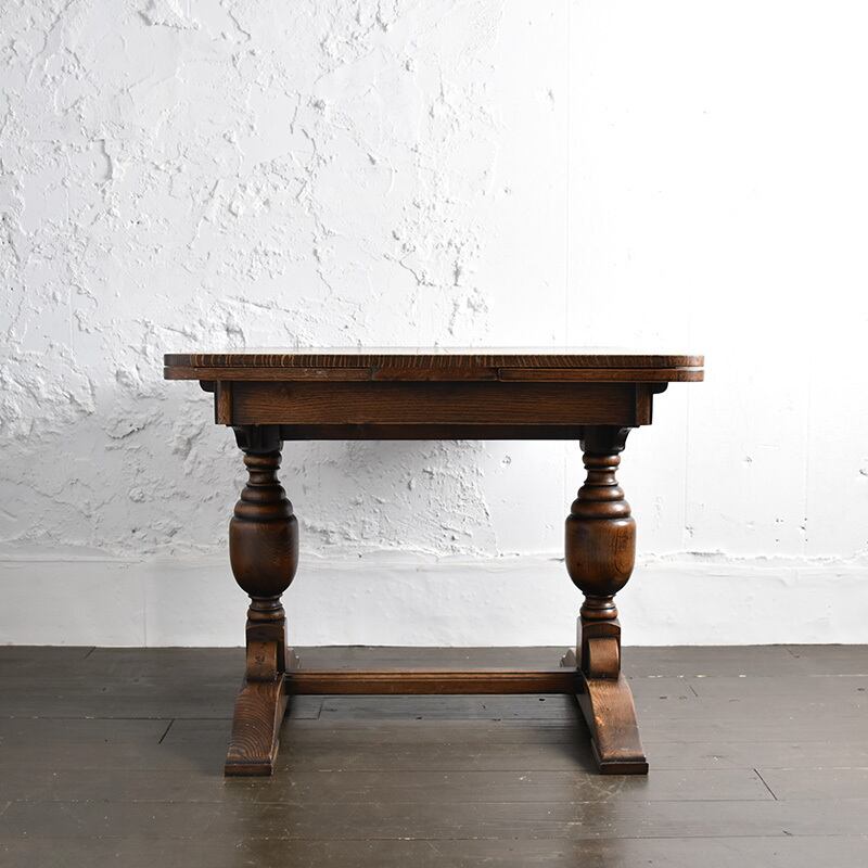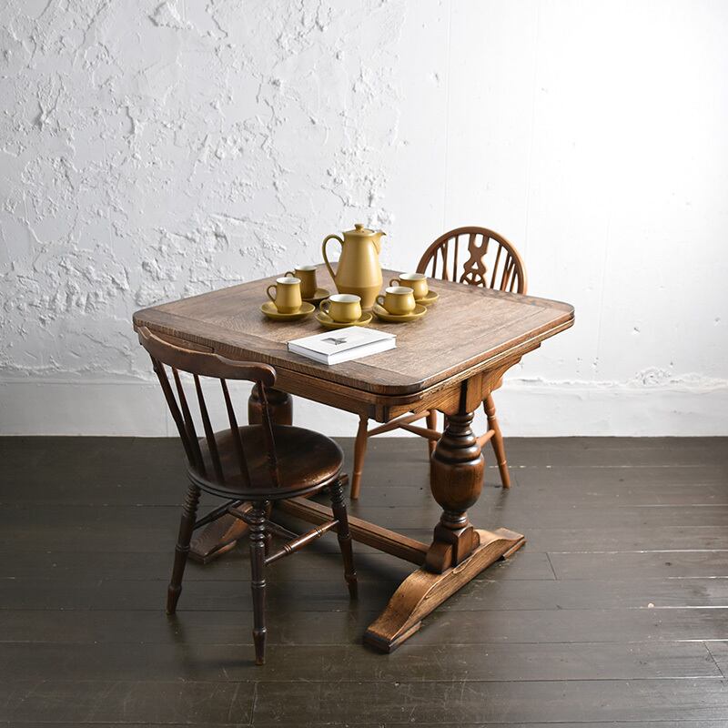 ドローリーフテーブルは、天板の下に収納されているエクステンション天板を引き出すことで天板の大きさを3段階に変えられる、イギリスアンティークの伝統的なデザインの一つです。