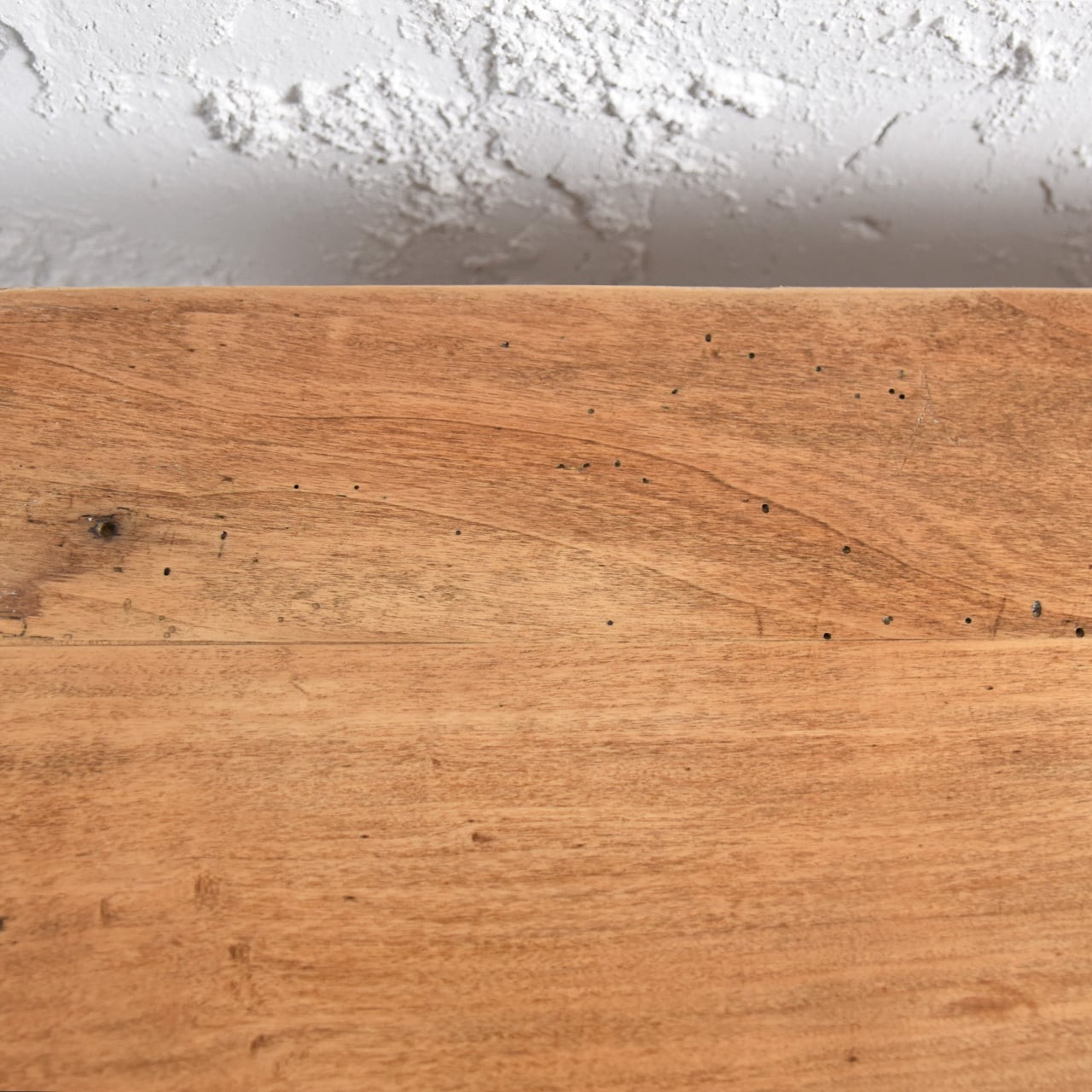 天板に小傷、凹み傷、虫喰い跡、反りなどが見られます。
