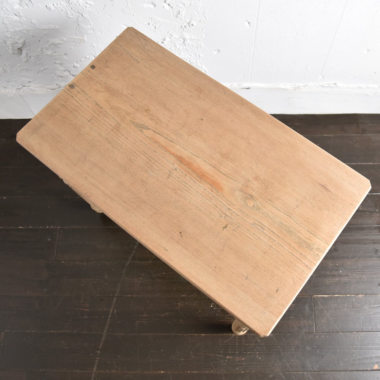 オーク材の天板には、経年変化の反りなどが見られます。