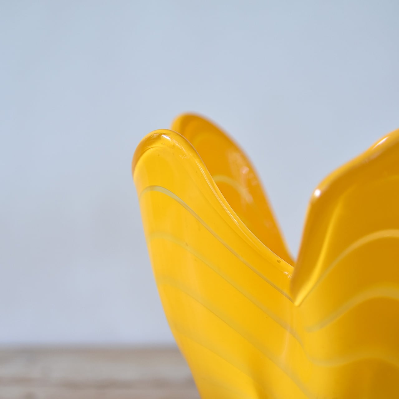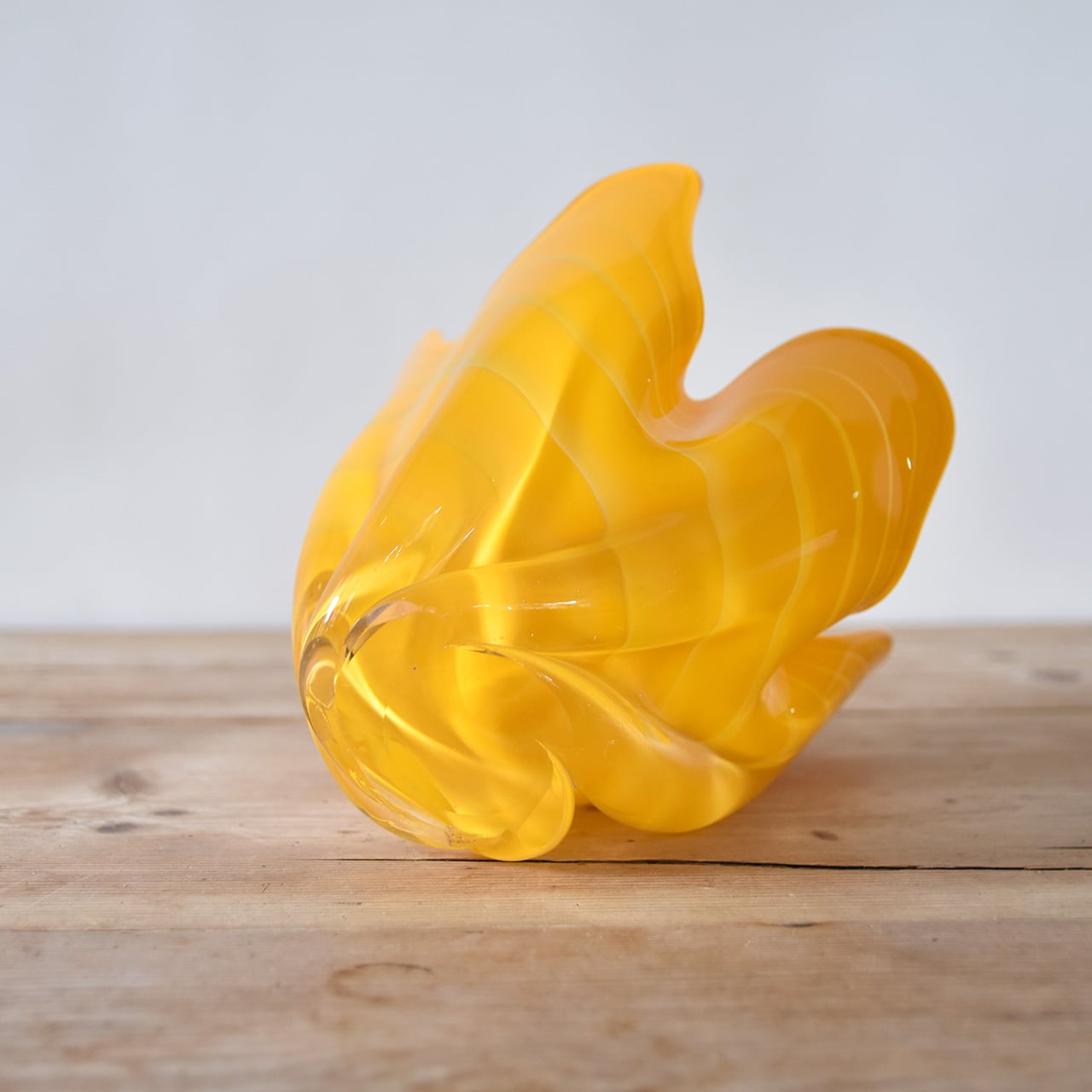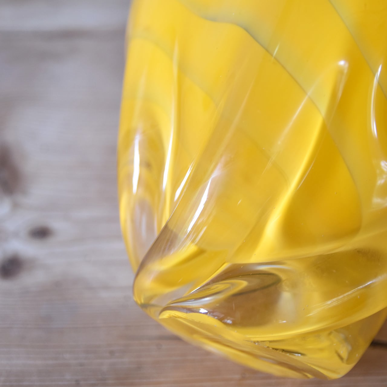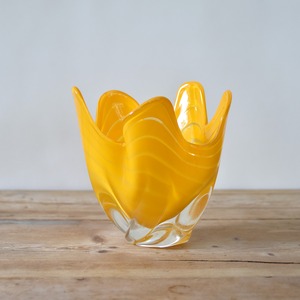 鮮やかな黄色と躍動感のあるフォルムが魅力的なジャパニーズヴィンテージのガラスベース。