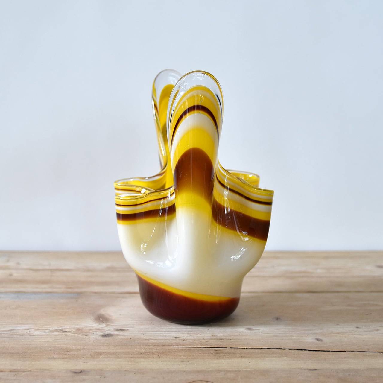 チョコバナナのような、カラメルソースが混ざったカスタードプリンのような、甘い香りがしてきそうなカラフルなカラーリングが魅力のジャパニーズヴィンテージのガラスベース。
