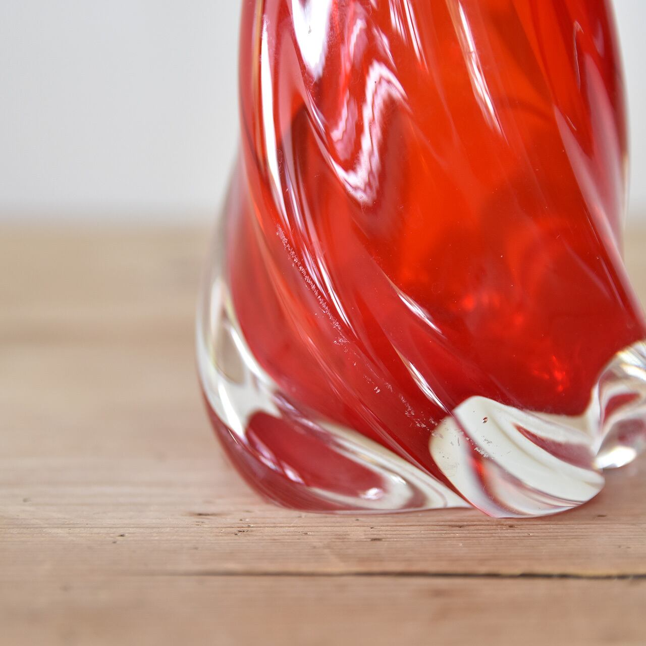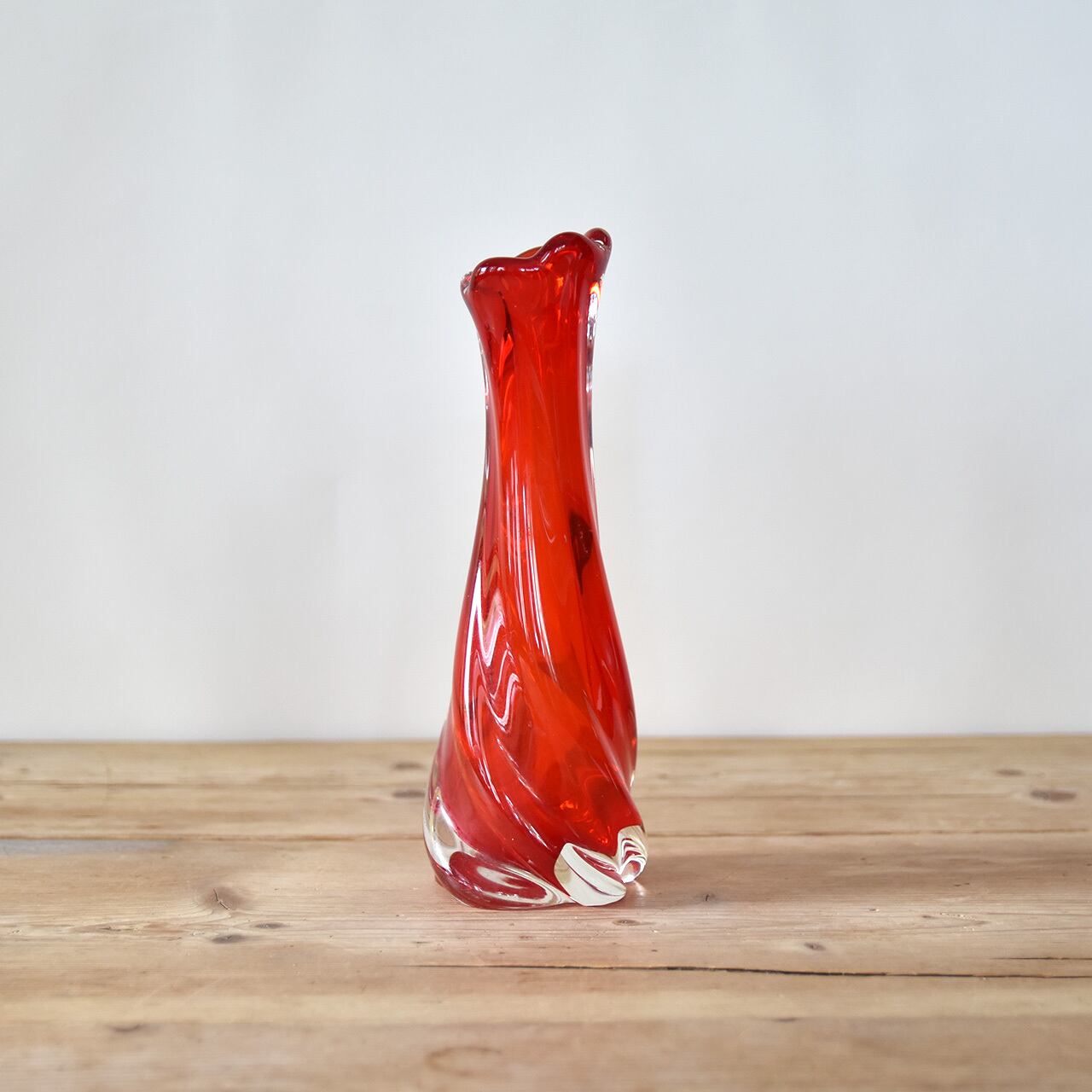 鮮やかな赤色とシンプルなフォルムが魅力のジャパニーズヴィンテージのガラスベース。