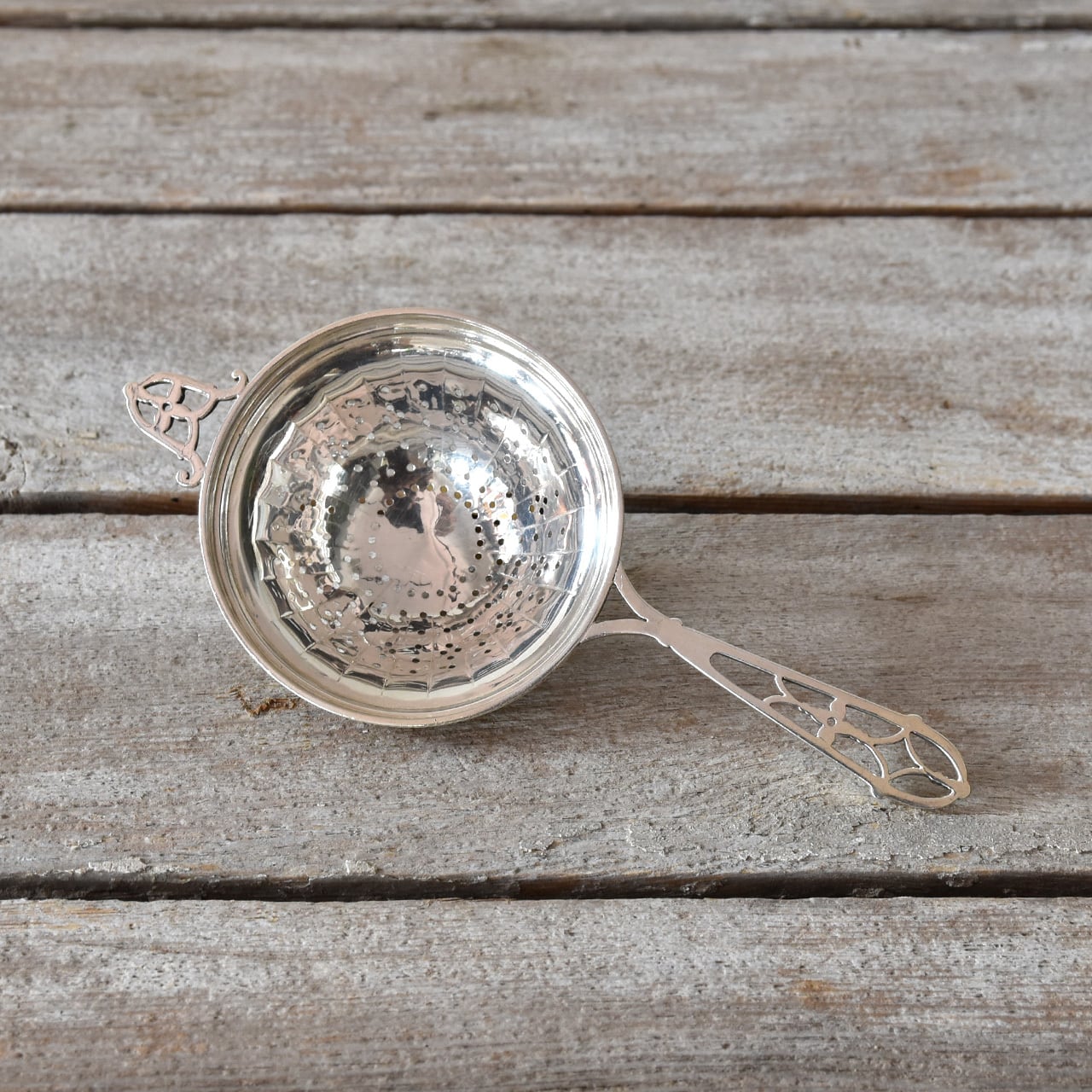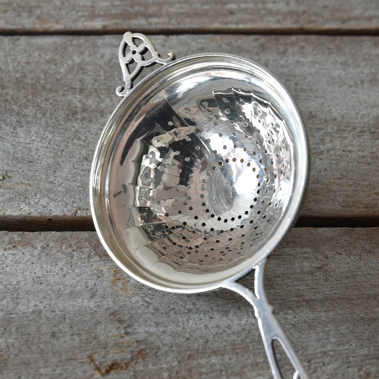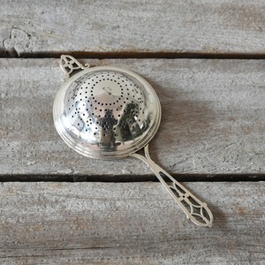 繊細な装飾が美しいシルバー製のティーストレーナーです。