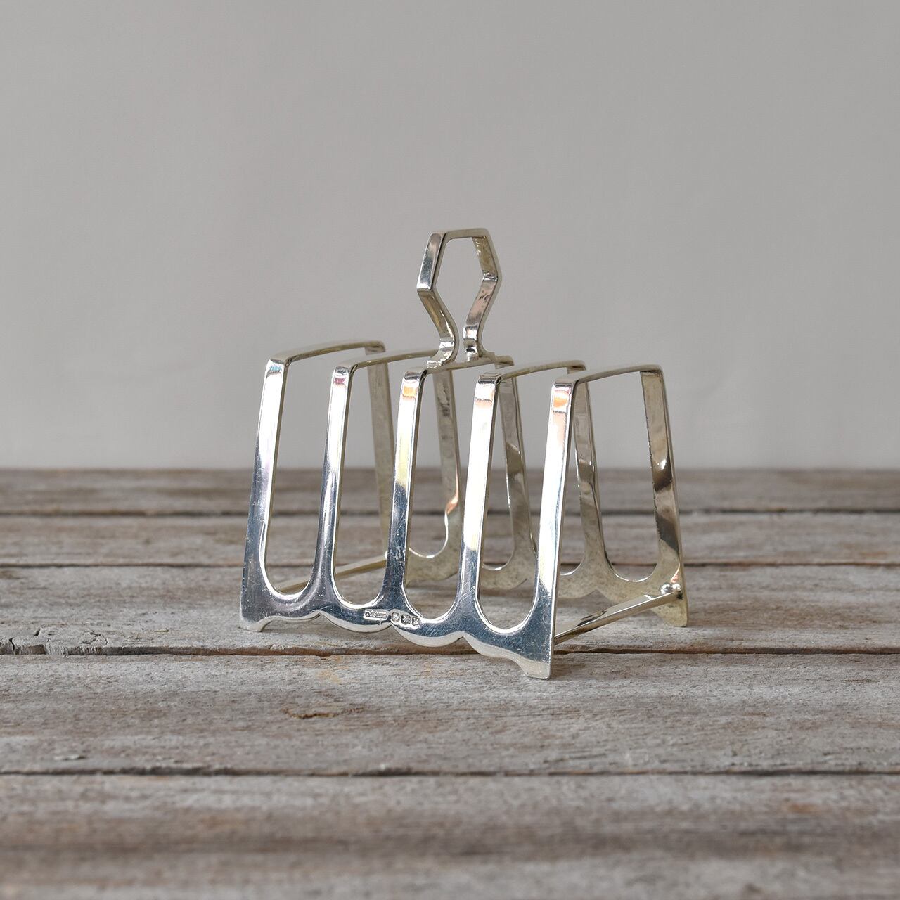 アール・デコを思わせる直線と曲線の絶妙なバランスで作り出されたデザインが素晴らしいシルバー製のトーストラックです。