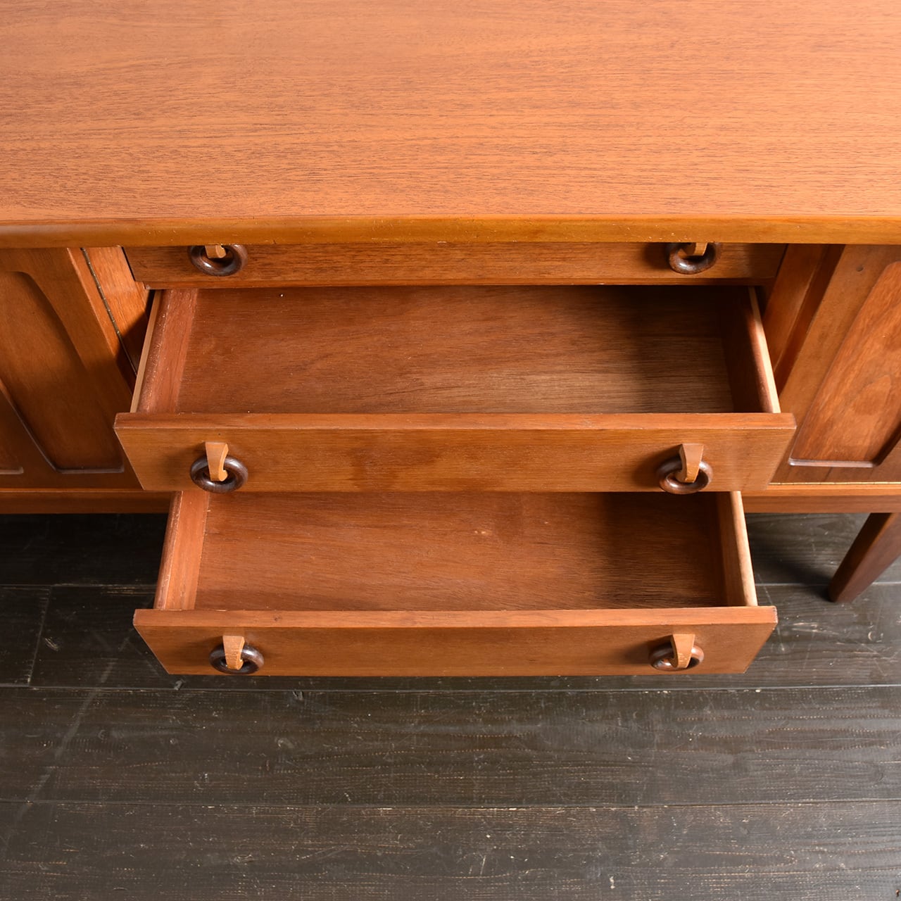 イギリスのミッドセンチュリー期を代表する家具メーカーの一つ、Beautility(ビューティリティ)のロング サイドボードです。